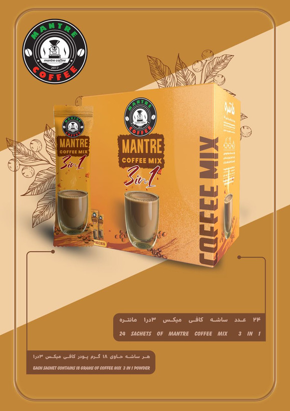 ترکیبی از پودر قهوه فوری ،پودر شیر و شکر : هر ساشه حاوی ۱۸ گرم پودر کافی میکس ۳ در ۱